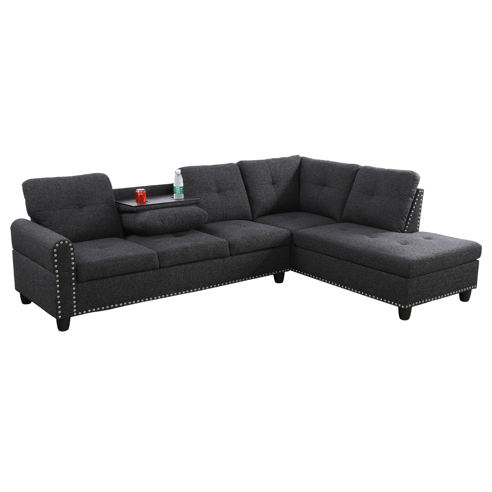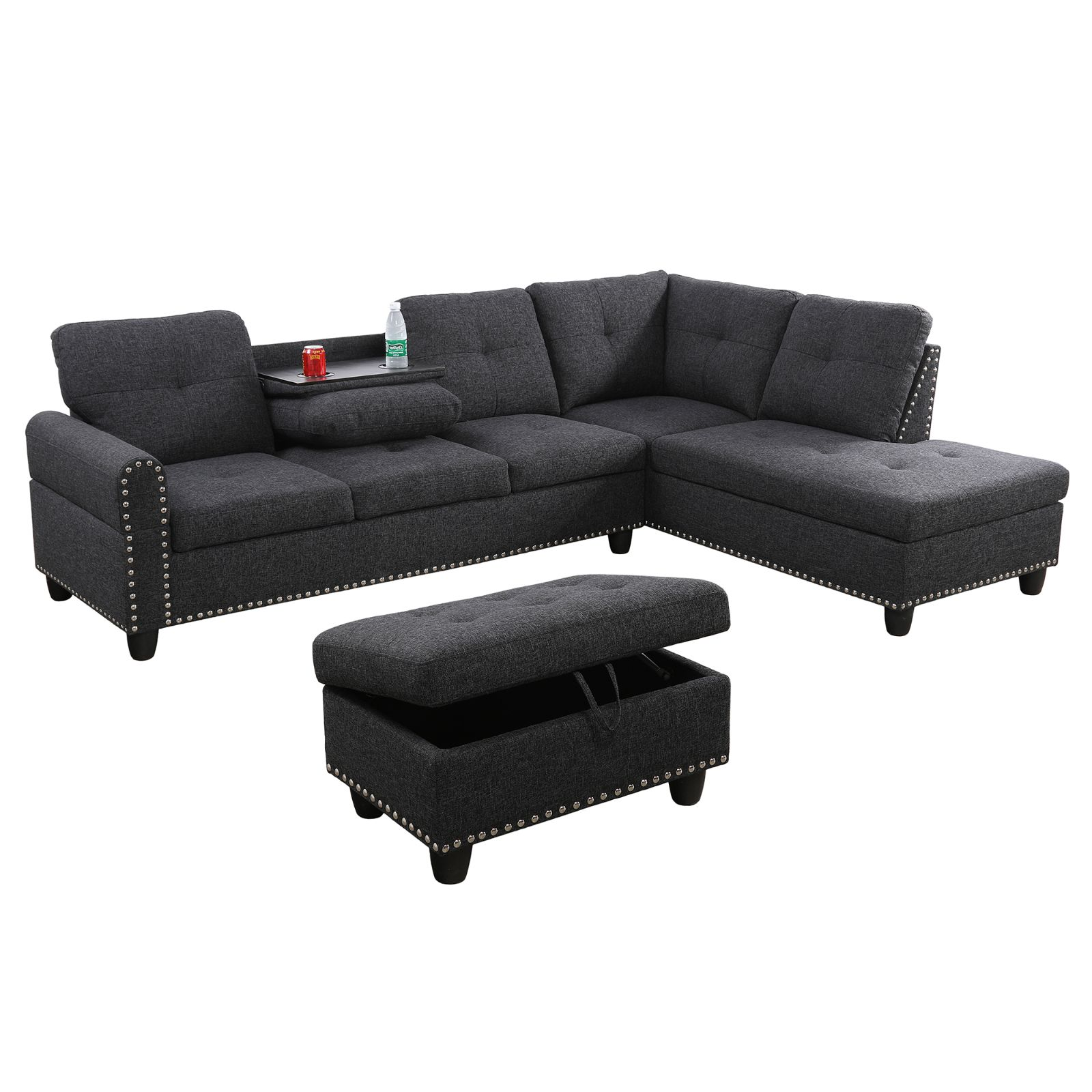 Black Grey Linen 3-Piece Sofa Living...